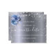 Uma cinta e moda Salve a placa Date para uma festa de aniversário 50th (ou qualquer idade). Um fundo metálico de aparência prateada e obscura, decorado com pó falso prateado e flores azuis. Personalize e adicione uma data e nome/idade. O texto: Salvar a Data é gravado com um script de estilo com letra de tendência grande.