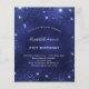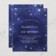 Um convite moderno, na moda e glamouroso para uma festa de aniversário de 21 ruas (ou qualquer idade). Um fundo azul marinho, decorado com poeira falsa brilhante. A cor azul é irregular. Personalize e adicione seu nome e detalhes da festa.