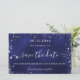 Uma cinta e moda Salve a placa Date para uma festa de aniversário de 21 (ou qualquer idade). Um fundo azul marinho incolor. Decorado com pó falso de cinza prateada. O texto: Salvar a Data é gravado com um script de estilo com letra de tendência grande.