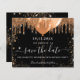 Uma cinta e uma moda Salve a placa Date para uma festa de aniversário 18th (ou qualquer idade). Um fundo preto clássico decorado com brilho de ouro falso e balões. Personalize e adicione uma data e nome/idade. O texto: Salvar a Data é gravado com um script de estilo com letra de tendência grande.