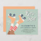 Convite de aniversário verde de patinagem de patinagem orçamental para qualquer idade com "Roll de Vamos!" num script branco e uma ilustração retrorinspirada de skates de roletas laranja numa rapariga que veste meias de tubos riscados vermelhos e brancos. Adicione seu nome e ano de aniversário à tipografia azul-lacre escura.