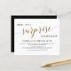 Festa de aniversário de Surpresa do Script Na moda de Dourado Orçamento. Como parte da seleção do orçamento aqui no Zazzle, estes convites não vêm com envelopes nem ajustado de forma suave em um envelope de tamanho padrão. O tamanho mais próximo é A6, mas haverá um intervalo de aproximadamente meio polegada. Se não se importa com a falta de humor, você poderia usar envelopes A6 tão disponíveis. Caso contrário, esse design pode ser transferido para um formato padrão 5x7 (que vem com envelopes) usando a ferramenta de transferência design. Como guia geral, a partir do momento do escrevendo (janeiro de 2021), 100 convites orçamentários (incluindo um desconto por volume) custariam cerca de US$ 39, enquanto 100 convites padrão 5x7, incluindo envelopes, custariam aproximadamente US$ 135. Sua quilometragem pode variar dependendo dos códigos de promocionais disponíveis do Zazzle, das vendas em todo o site ou das mudanças nos preços.