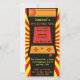 Divertido, design para a sua festa de aniversário de jogos! Design apresenta um fundo de explosão galáctica laranja e amarela. Há um console de jogos de fliperama preto. Dentro do console do jogo do arcade e a tela do jogo de vídeo é um texto personalizável em forma de letra divertida no estilo de matriz de pontos em amarelo, laranja e preto. O lado inverso do convite para jogos de fliperama é preto sólido. Este é o convite perfeito para a festa de aniversário temática de videogames do seu filho ou para qualquer criança que simplesmente ame jogos.