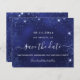 Uma cinta e moda Salve a placa Date para uma festa de aniversário de 21 (ou qualquer idade). Um fundo azul incolor. Decorado com pó de brilho falso. O texto: Salvar a Data é gravado com um script de estilo com letra de tendência grande.