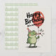 Este adorável design de aniversário apresenta um simpático sapo verde usando um chapéu de festa listrado de vermelho, segurando um grande balão vermelho e soprando uma corneta de festa. O texto divertido diz “Feliz Aniversário, Estamos desejando a você…” com acentos de confete coloridos. Perfeito para crianças e amantes de animais, esta ilustração alegre e divertida traz sorrisos para qualquer celebração. Ideal para cartões de aniversário, convites de festa ou impressões festivas com charme caprichoso.