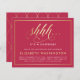 Orçamento Dourado e Magenta Convite de aniversário surpresa por Designs Eugene. Envie esses convites magenta e ouro minimalistas e comece sua festa surpresa ao estilo! Na frente, em um script de estilo manuscrito a na moda é o texto "shhh..." em folha de ouro falsa. Ao contrário, há um padrão de folha de ouro falso-elegante em fundo magenta brilhante.