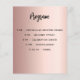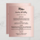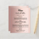 fundo de gradiente rosa dourado. Texto preto. Frente: personalize e adicione seu nome, data e menu. Voltar: Programa. Se você tiver um grande programa, poderá reduzir o espaçamento entre linhas. 1 folha = 1 menu impresso borda a borda.