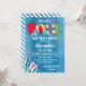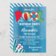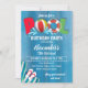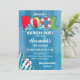 Design de festa de aniversário de verão com fundo azul de madeira e gráficos de piscina correspondentes. Para acessar ferramentas avançadas de edição, vá para o link "Personalizar" e, em seguida, "clicar para personalizar mais".
