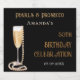 Uma cor preta de fundo. Decorado com um copo de espumante de ouro Prosecco e pérolas. Adicionar um nome e uma data.