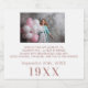 Fundo branco, texto rosa dourado. O texto: O nome é escrito em ouro rosa escuro com um grande estilo escrito à mão moderno. Personalize e adicione uma foto, data, nome e ano de nascimento, fatos divertidos ou uma biografia. Você pode alterar a cor do texto para corresponder ao seu tema de festa.