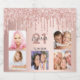 Para uma festa de aniversário de 21 (ou qualquer idade), celebrando sua vida com uma colagem de 5 fotos suas. Personalize e adicione um nome, 21 anos e uma data. Data de nascimento ou data da festa. Rosa dourado e letras coloridas de cinza escura. Um fundo de cor rosa dourado da moenda decorado com pingos, pingos de tinta parecem cor-de-rosa e rosa.