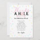Cartão de agradecimento de festa de aniversário fofo após uma festa de aniversário com tema de donut, apresentando ilustração de doughnut com confeitos. O texto no topo diz "Obrigado por tudo" com um donut dentro do texto. Personalize este convite de cartão adicionando o nome da criança no final.