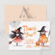 Cartão de agradecimento de aniversário de festa de bruxa fofa de Halloween. Itens correspondentes disponíveis.