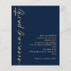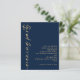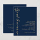 Caligrafia orçamental Código QR Marinho Azul e Dourado Convidados do Partido de Casamento Noturno. Um alternativo com preço inferior a 4,5 x 5,6" em semigloscópio de 110 gsm, semelhante em espessura a um cartão postal. Adicione seu código QR ao seu site de casamento no verso faz com que esta seja uma opção conveniente para seus convidados para RSVP e veja todos os detalhes sem a necessidade de RSVP separado e cartões de detalhes. O script de na moda é girado para o lado esquerdo, com todos os detalhes elegantemente para a direita com muito espaço em branco para uma sensação contemporânea. Personalize facilmente com seus detalhes. E altere a cor do texto e do plano de fundo, se desejar, através da opção editar mais.