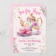 Festa de Chá para Três! Menina Floral Rosa Convite