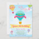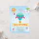 Convite de aniversário de balão de ar quente Menina de 1rua, primeira festa de aniversário convidada. Para Cima e Para Fora! Este belo convite para qualquer festa de aniversário etária com vários balões de ar quente, nuvens brancas e céu azul. Basta editar este modelo fácil de usar no menu Personalização para torná-lo especial.