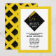 Convites criativos de festa de formatura amarela, preta e dourada com boné formando preto e dourado.