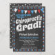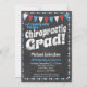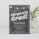 Um convite divertido e único para a festa de formatura do Chiropractor, no estilo do quadro, com bandeiras vermelhas, brancas e azuis e uma borda polka-dot balbuciada com pontos no verso.