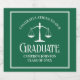 Esta etiqueta de vinho da festa de formatura da escola de direito verde personalizada apresenta tipografia branca para uma classe de formando de 2024. Personalize com o seu ano de graduação sob a escala de justiça para o advogado personalizado excelente ou favor de advogado.