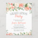Bonitos convites para festas de formatura florais. Design apresenta rosas pintados à mão de aquarelas, peônias e híbridos em tons ou cor-de-rosa pincel, pêssego, coral e creme.