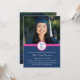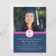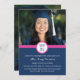 cartão com fotos personalizado de convite de festa de formatura em cor rosa-quente, azul-marinho escuro e design moderno branco. Personalize este cartão com fotos de formando adicionando o ano de sua graduação, suas próprias fotos e seus detalhes de festa de formatura.