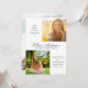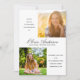 Este moderno convite à festa de formatura oferece dois quadros de fotos quadrados na frente e uma grande foto no verso. O texto personalizado permite adicionar o nome e a escola do formando e os detalhes do convite de festas. O fundo é branco.