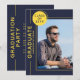 Festa de formatura de fotos O moderno Script Blue Yellow Invtions apresenta sua foto favorita com o texto simples "Formando" e seu nome e detalhes personalizados de graduação. Personalize editando o texto nas caixas de texto fornecidas e adicionando sua foto favorita. Personalize com as informações do convite de formatura no sentido inverso. Criado por ©Evco Studio www.zazzle.com/store/evcostudio