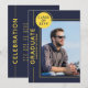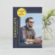 Festa de formatura de fotos O moderno Script Blue Yellow Invtions apresenta sua foto favorita com o texto simples "Formando" e as informações de convite de festa de formatura no verso. Personalize editando o texto nas caixas de texto fornecidas e adicionando sua foto favorita. Criado por ©Evco Studio www.zazzle.com/store/evcostudio