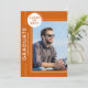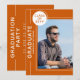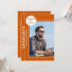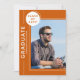 Festa de formatura de fotos O moderno Script Orange White Invances apresenta sua foto favorita com o texto simples "Formando" e seu nome e detalhes personalizados de graduação. Personalize editando o texto nas caixas de texto fornecidas e adicionando sua foto favorita. Personalize com as informações do convite de formatura no sentido inverso. Criado por ©Evco Studio www.zazzle.com/store/evcostudio