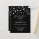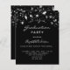Um cartão de convite glamouroso para uma festa de formatura 20xx (ou qualquer ano) para ele e para ela. Um fundo preto decorado com estrelas. Personalize e adicione um nome e detalhes da parte. O texto Graduação e o nome são escritos com um script de estilo moderno, escrito à mão. Texto branco colorido.