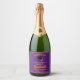 Esta etiqueta de vinho espumante de festa de formatura mais velho roxo e laranja moderna apresenta a tipografia típica do seu segundo grau ou nome da faculdade para a classe de 2025. Personalize com seu ano de graduação sob o script de chic manuscrito e boné preto para parabéns personalizados de excelente.