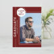Festa de formatura de fotos Os convites para brancos do Modern Script Burgundy apresentam sua foto favorita com o texto simples "Formando" e as informações de convite para festas de formatura no verso. Personalize editando o texto nas caixas de texto fornecidas e adicionando sua foto favorita. Criado por ©Evco Studio www.zazzle.com/store/evcostudio
