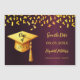 Um cartão magnético Salve a data para uma festa de formatura. Na frente: Um fundo de gradiente burguês, texto de ouro. Modelos para um nome e data. O nome e o texto: Salvar a Data são escritos com um script de estilo moderno com letra manual. Com um boné de ouro falso, tassel superior.