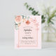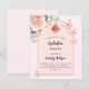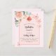 Um fundo cor-de-rosa pincelado com um rosa dourado e um arco colorido de pêssego. Decorados com ouro rosa e borboletas cor-de-rosa esbranquiçada, rosa, eucalipto verde e borboletas. Personalize e adicione um nome e detalhes da parte. Traseira: cor de fundo rosa dourada. 1 folha = 1 convite impresso de borda a borda.