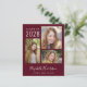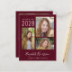 Convite de formatura e festa de graduação vermelho bordô econômico com uma colagem de 3 fotos, "Graduado" em um script branco elegante e o nome do graduado, ano de conclusão e escola ou universidade em tipografia branca simples. No verso, adicione uma imagem adicional e os detalhes da sua festa de formatura.
