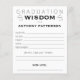 Mande seu formando com desejos e sabedoria com este moderno cartão "Sabedoria da Graduação". Os convidados enchem-no no seu encontro, grande ou pequeno. É uma maneira divertida de envolver os convidados da festa e manter o formando por anos. A cor de fundo (e a cor na parte traseira) podem ser facilmente alteradas para corresponder às cores da escola, se você quiser, clicando em "clicar para personalizar mais", que é encontrado na área de personalização. A ferramenta design de Zazzle é muito intuitiva e sempre há um designer pronto para ajudar. Você também é bem-vindo a me enviar mensagens com perguntas.