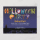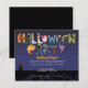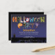 Convite personalizado de festa de Halloween com orçamento typography assustadora da Ricaso - apresentando um gato preto e texto estranho e assustador em diferentes formas de monstros e criaturas temáticas de Halloween