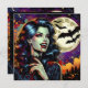 Convites de festas de Halloween. Cor de laranja, preto e psíquico psíquico, estilo cômico feminino vampiro e morcegos antes de um convite do Festa de Halloween da lua de cheio.
