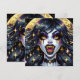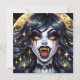 Convites de Halloween. Vampiro negro e dourado com presas ouros e olhos quadrinhos pop art ai art. Legal para o Halloween ou qualquer pessoa que ama vampiros.