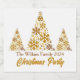 Um guião em ouro-chic etiquetas de garrafas de champanhe da festa de Natal com o seu nome familiar sob lindas árvores feitas de flocos de neve ouro acima do Feliz Natal. O feriado de tendências favorece um design artístico.