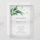 Estes convites de festa de noivado apresentam um verde de aquarela sobre um fundo de madeira lavada em branco. Use os campos modelo para adicionar seus detalhes personalizados. Solicite cartões impressos on-line ou convites imprimíveis. Uma escolha elegante para eventos com temas rústicos e jardins. Para ver mais designs como esta, visite www.zazzle.com/dotellabelle Arte a aquarela exclusiva e design por Victoria Grigaliunas do Do Tell A Belle.