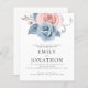 NOTA Há duas opções de papel a escolher para este tamanho (4,5 x 5,6") na faixa de Orçamento. Para este produto, eu recomendaria o semibrilho, que é um estoque de cartão de 110 gsm, semelhante em espessura a um cartão postal. A opção Satin é um papel muito mais fino, 80gsm. O padrão é definido como semirbrilho. POR FAVOR, NOTE que existe UM por folha. Festa de noivado de de Florais Azul Moderno de Orçamento. As flores de artsy, azul pastel poeirento e cor-de-rosa esfarelado, fluem do topo. Personalize facilmente o texto para seus próprios detalhes.