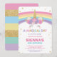 Convite de aniversário Rainbow Unicorn, com um unicórnio fofo e um bonito arco-íris. Personalize este vibrante Convite de Aniversário do Rainbow Unicorn com os detalhes do seu partido de forma fácil e rápida, basta pressionar o botão personalizá-lo para reorganizar e formatar o estilo e a colocação do texto. Excelente para QUALQUER IDADE! Design Exclusivo (c) O Feliz Cat Studio. Itens correspondentes disponíveis no repositório!