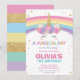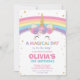 Convite de aniversário Rainbow Unicorn, com um unicórnio fofo e um bonito arco-íris. Personalize este vibrante Convite de Aniversário do Rainbow Unicorn com os detalhes do seu partido de forma fácil e rápida, basta pressionar o botão personalizá-lo para reorganizar e formatar o estilo e a colocação do texto. Excelente para QUALQUER IDADE! Design Exclusivo (c) O Feliz Cat Studio. Itens correspondentes disponíveis no repositório!