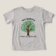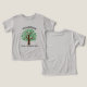 Personalize essas camisetas de três mesas de criança da árvore genealógica para um garoto ou garota na próxima festa de reunião. Personalize com o sobrenome de sua família acima das folhas verdes com o evento e o ano abaixo do desenho da natureza.