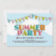A tipografia colorida e o revestimento de bandeiras em padrões pokadot e stripe dão palco para uma festa de verão divertida! Em tons alegres de azul-marinho, laranja, rosa, verde limão e amarelo, todos contra um céu azul e nuvens brancas inchadas. excelente para festas de piscina ou praia, churrascos, bolachas ou piqueniques - qualquer celebração de verão. Crie um olhar coordenado de excelente com nossos selos, placas e cartões de bunting DIY!
