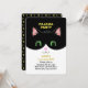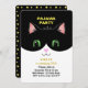 Bonito Convite de festas do Pajama com um lindo gato de smoking e estrelas nas costas, sobre fundo preto. Aproveite uma festa mágica com este convite para gatinhos de smoking! Todos os textos e números estão prontos para serem personalizados para aniversários, encontros, festas de pijama, chás de fraldas e qualquer outra celebração! Bom para meninas ou meninos!!
