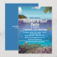 Fuja para um mundo tranquilo debaixo do mar, seja para uma festa na praia, um evento de snorkeling ou surfe, ou até mesmo uma festa de aniversário temática de aquário para criança ou adulto. Espie o oceano para ver um recife de coral repleto de vida marinha com a superfície da água mostrando uma praia tropical e palmeiras. Pode ser personalizado para qualquer ocasião especial com tema de praia ou oceano, como uma festa de aniversário, despedida de solteira ou despedida de solteiro, churrasco de frutos do mar, churrasco, ou até mesmo uma festa de noivado ou chá de noiva casual com tema de praia ou surfe. Disponível com produtos combinando.