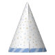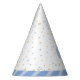 Primeiro chapéu branco e azul de bebê da festa dos dentes com personagem de fada de desenho animado e estrelas brancas. Visite o compro para obter mais suprimentos para o primeiro dente!