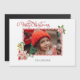 Fun, colorful and whimsical candy cane style frame and watercolor Christmas candy surrounding a one-photo landscape aspect template with a unique custom candy cane Merry Christmas greeting.